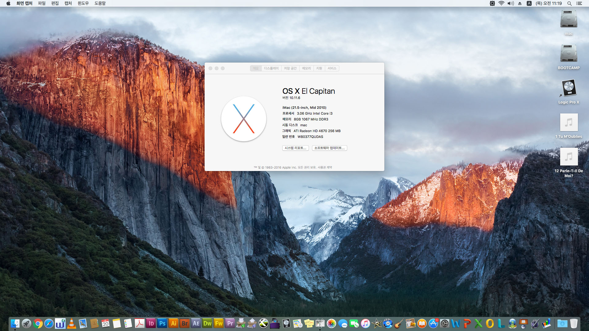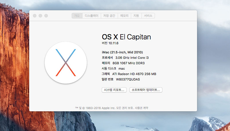 맥os 10.11.6 엘캐피탄 설치됨